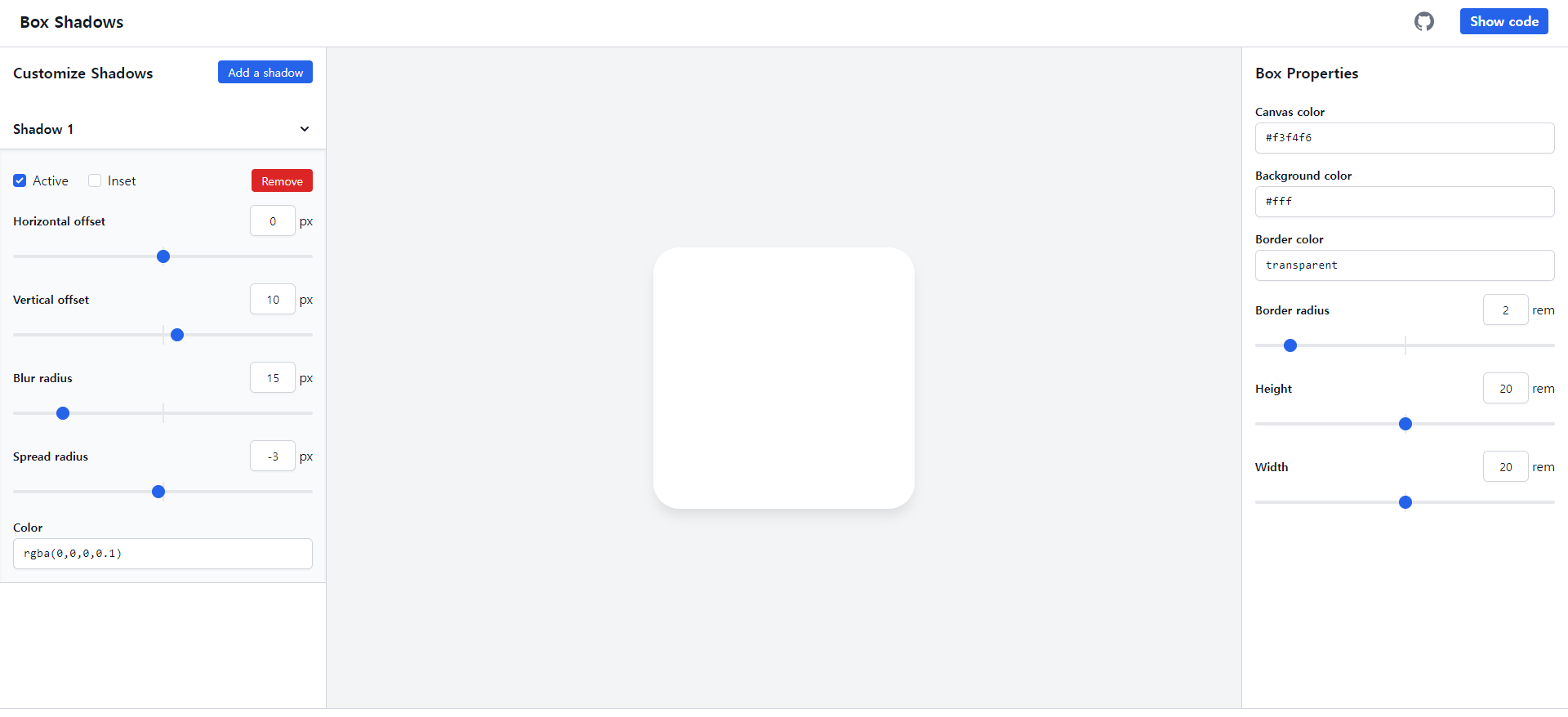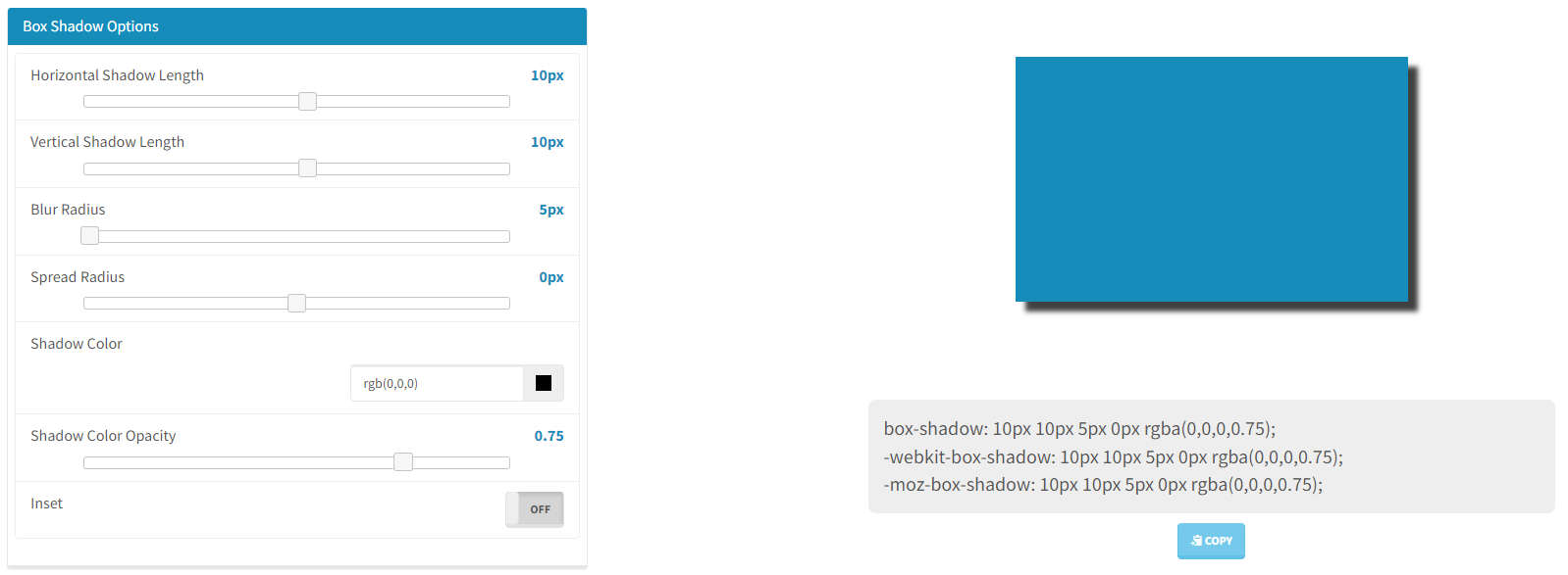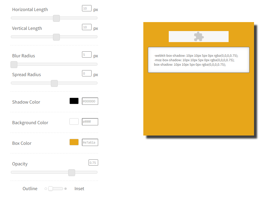 A box-shadow CSS Generator tool to quickly generate box-shadow CSS declarations.