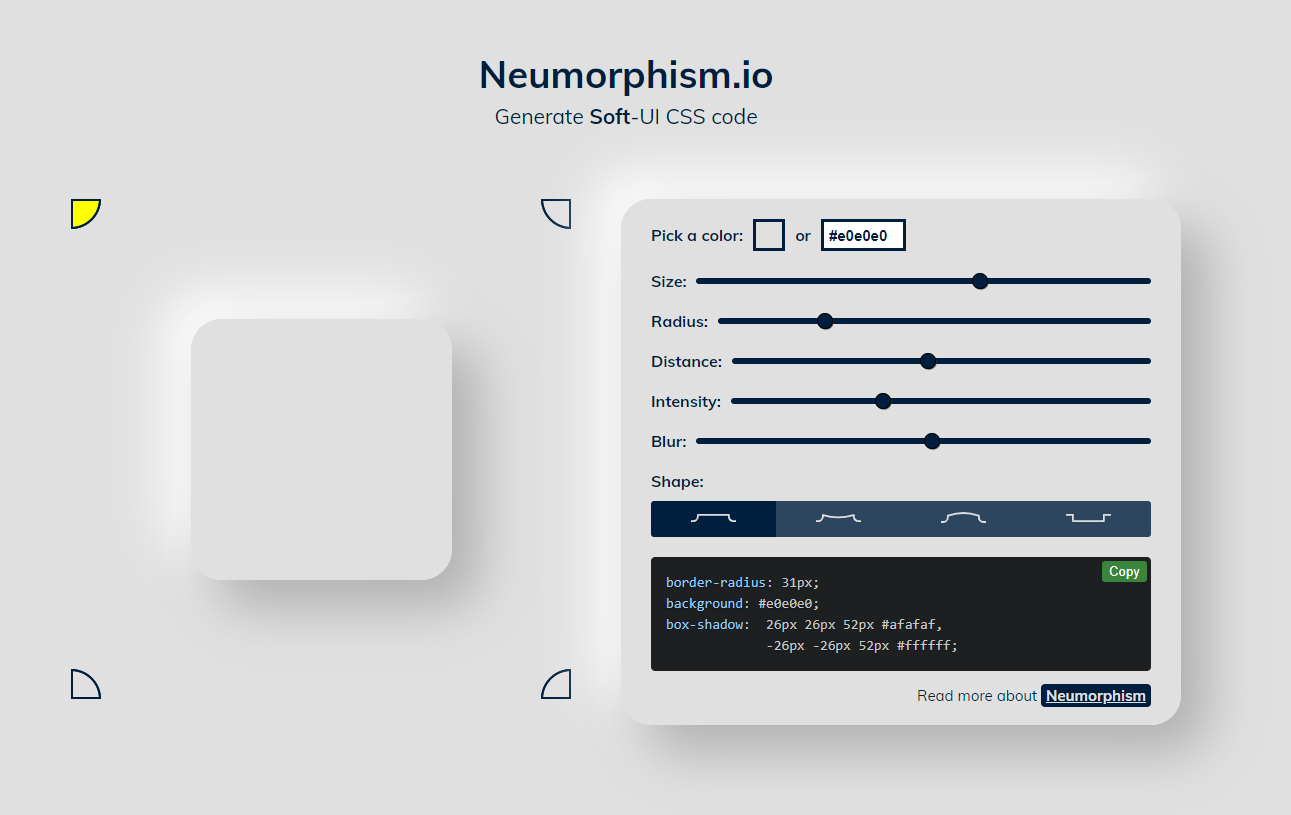 CSS code generator that will help with colors, gradients and shadows to adapt this new design trend or discover its posibilities.