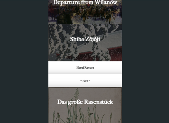 Simple jQuery accordion with 3D folding paper effect. Paintings used for this pen: 1. "Departure from Wilanów of John III Sobieski and Marysieńka" by...