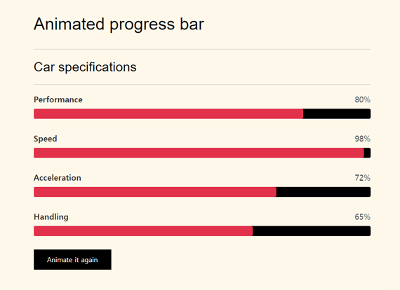Animated progress bars with jQuery. It is a simple implementation for Website usage to build specifications for different things like for cars, buildin...