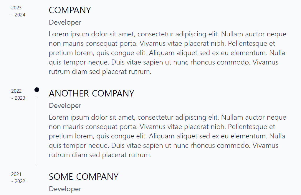 Basic timeline component with dark mode compatibility. Using tailwindcss....