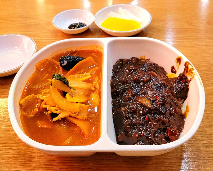 짜장의 어두운 단맛과 짬뽕의 붉은 열기 앞에서
