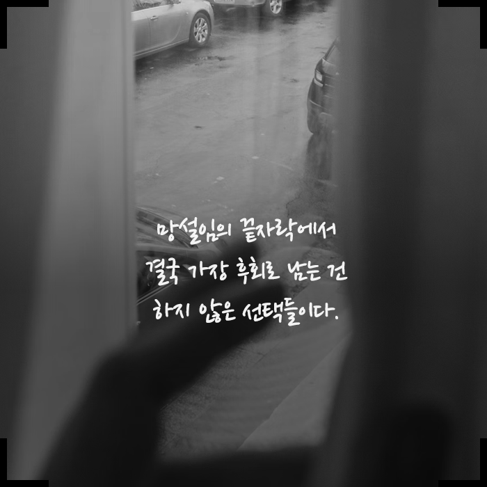 하지만 그 순간 망설임이라는 그림자가 우리의 발목을 잡는다.