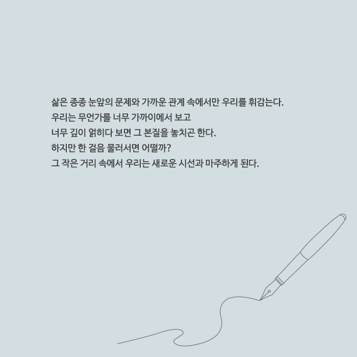 한 걸음 물러선다는 것은 세상과 나 사이에 작은 틈을 두는 일이다.
