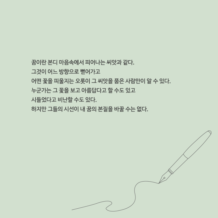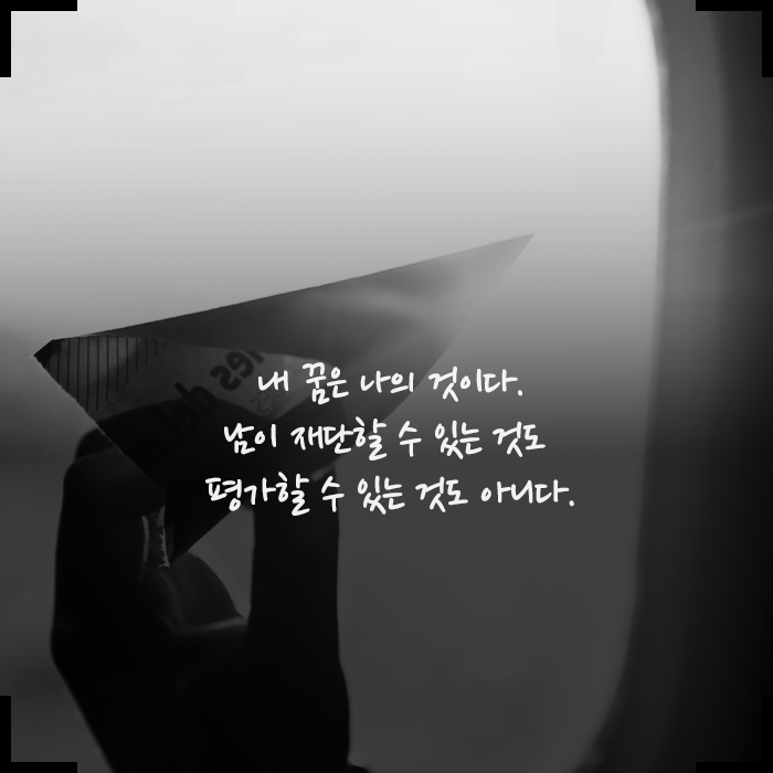 누가 뭐라고 하든 내 꿈은 나의 것이다. 그것은 남이 재단할 수 없는 나만의 하늘이다.