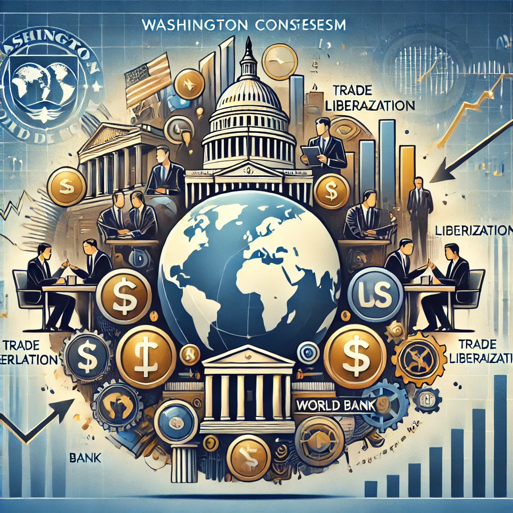 1980년대 남미 등 개발도상국들은 경제 위기를 겪으며 높은 인플레이션과 부채 문제를 안고 있었습니다. 이에 국제통화기금(IMF), 세계은행(WB), 미국 재무부가 주도하여 시장 개방과 정부 개입 축소를 통해 경제를 성장시키자는 원칙을 제시했으며, 이를 "워싱턴 컨센서스"라고 부르게 되었습니다.