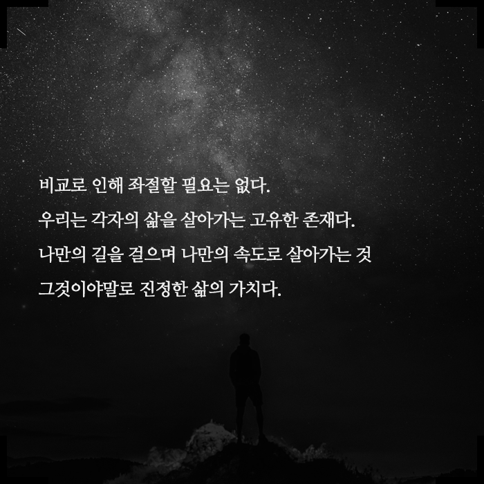#비교 #좌절 #기준 #나만의길 #나만의속도 #나만의목표 #타인의기준 #짧은글 #좋은글
