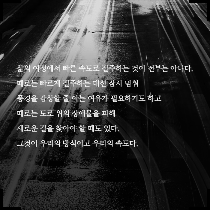 #속도 #각자의속도 #삶의여정 #장애물 #질주 #나만의속도 #나만의방식 #짧은글 #좋은글