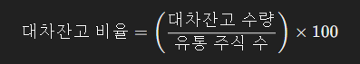| 대차잔고 | 빌린 상태에서 아직 반환되지 않은 주식 수량 |