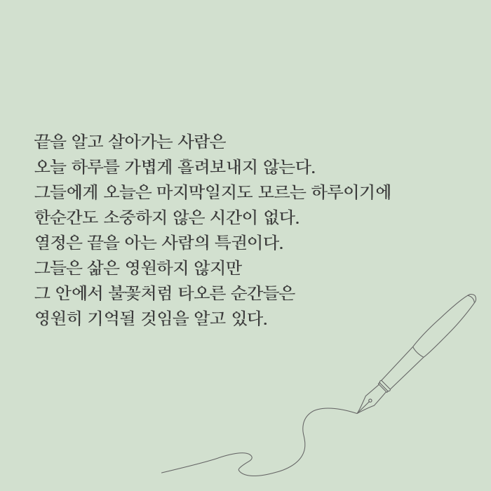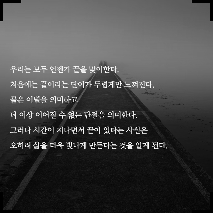 #끝을알다 #끝 #열정 #삶을더욱빛나게하다 #이별 #단절 #열정적인삶 #좋은글 #짧은글