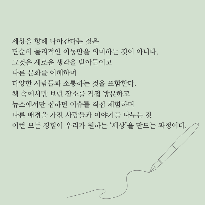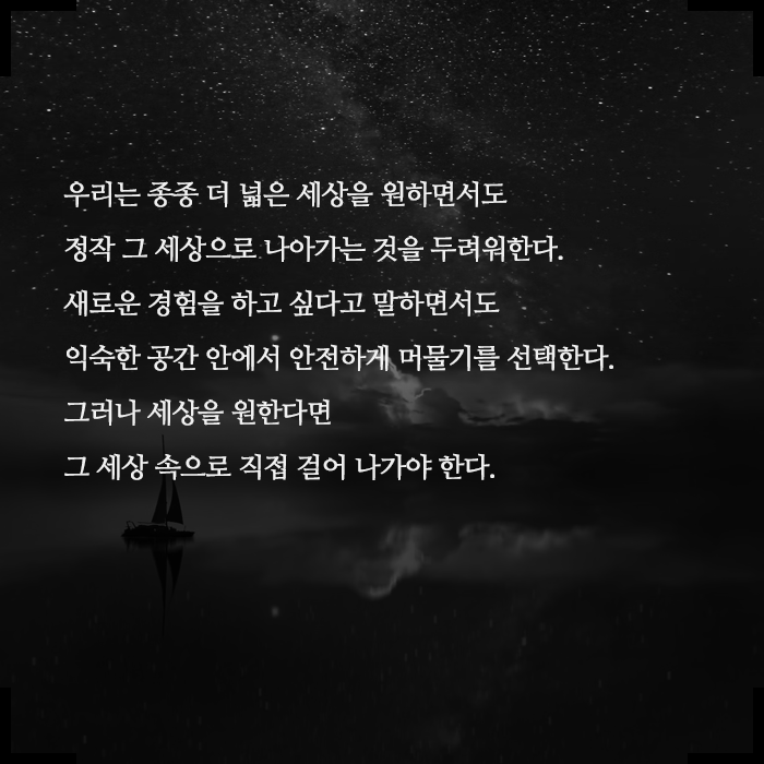 #세상 #세상을원하다 #세상으로나아가다 #새로운경험 #익숙한공간 #새로운생각 #다른문화 #좋은글 #짧은글