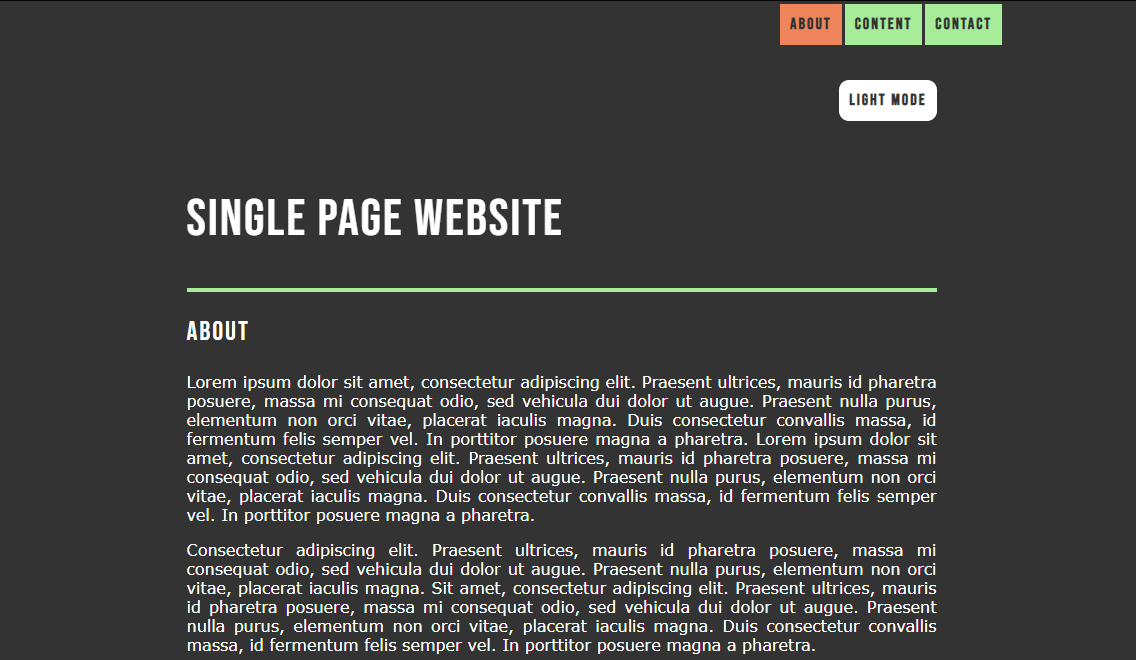One page website + Dark mode button + smooth scroll anchors