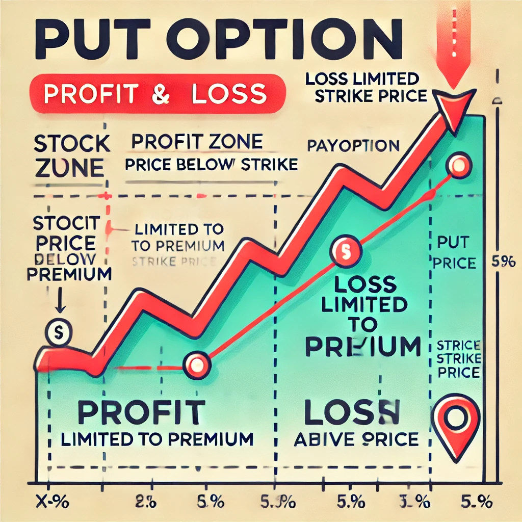 풋옵션은 옵션 거래에서 특정 자산을 미래의 정해진 가격(행사가격, Strike Price)에 팔 수 있는 권리를 매수자에게 부여하는 계약입니다.