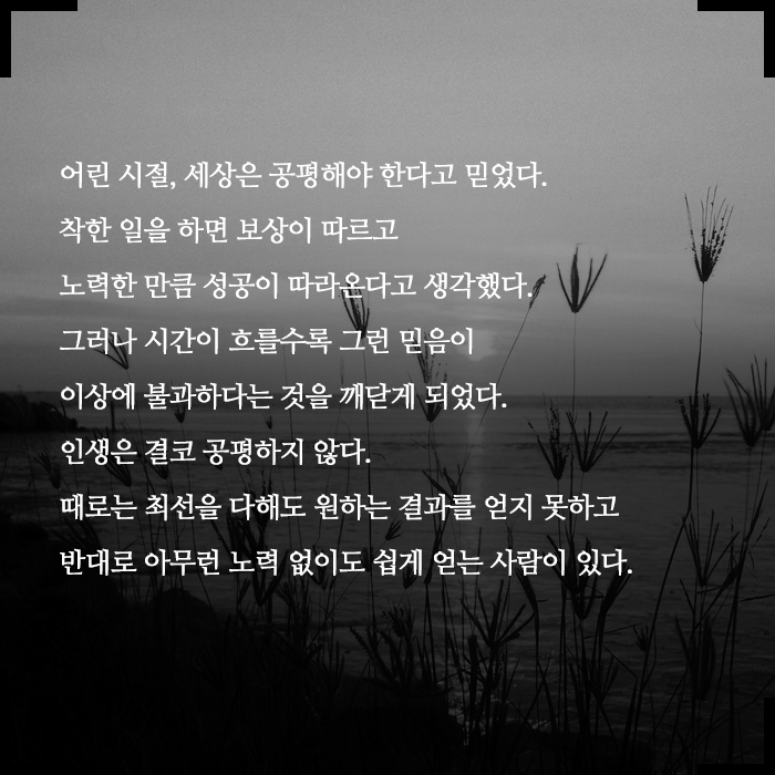 #공평 #불공평 #나만의길 #노력 #인생 #각자의방식 #행복과성취 #좋은글 #짧은글