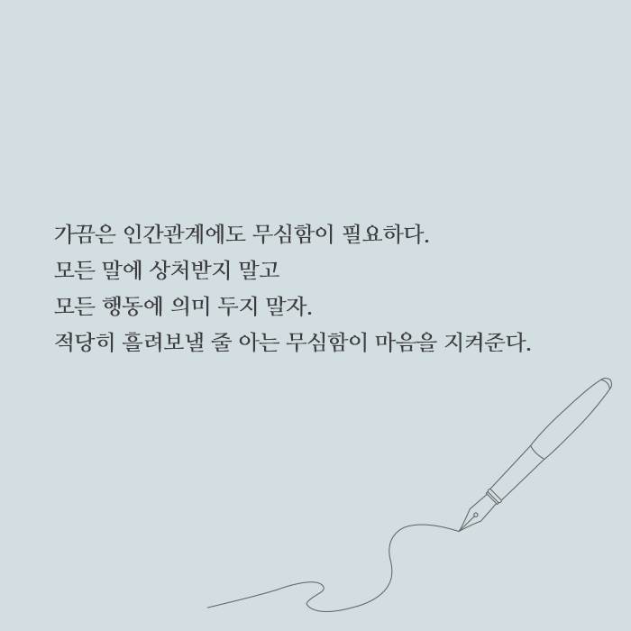 적당히 흘려보낼 줄 아는 무심함이 마음을 지켜준다.